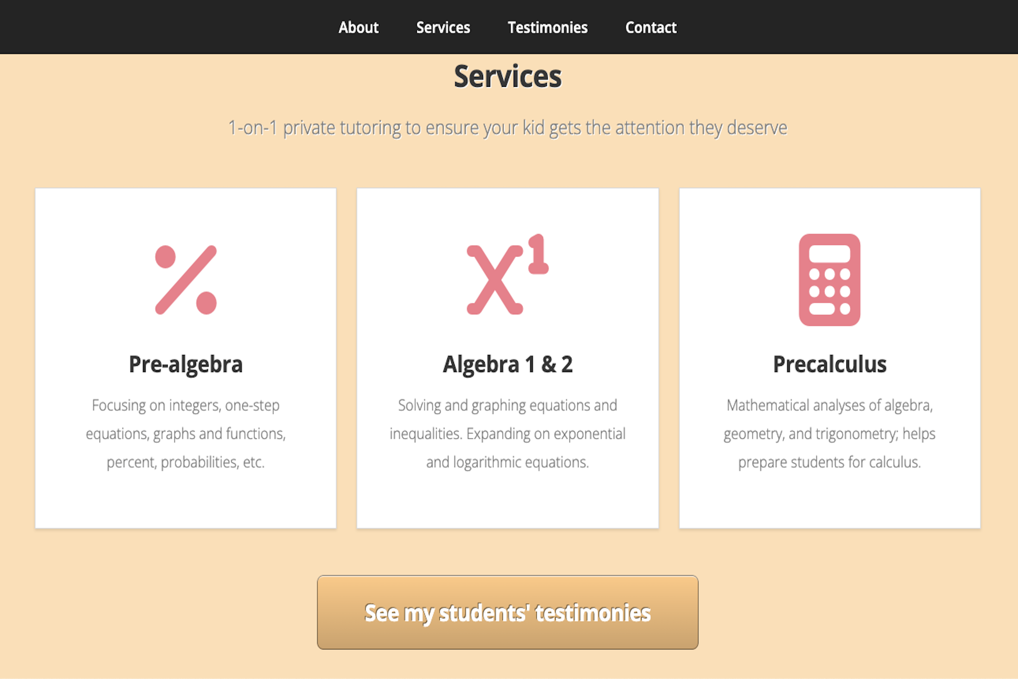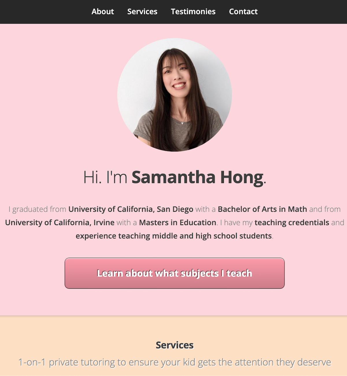 Landing page for client so that she can have web presence for her tutoring business.